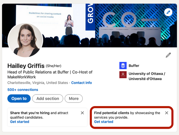 Or, if your company is a service provider, use this feature to find your next client! At the top of your profile page, click the “Find potential clients” box to add information about the services you offer and show up in the marketplace.